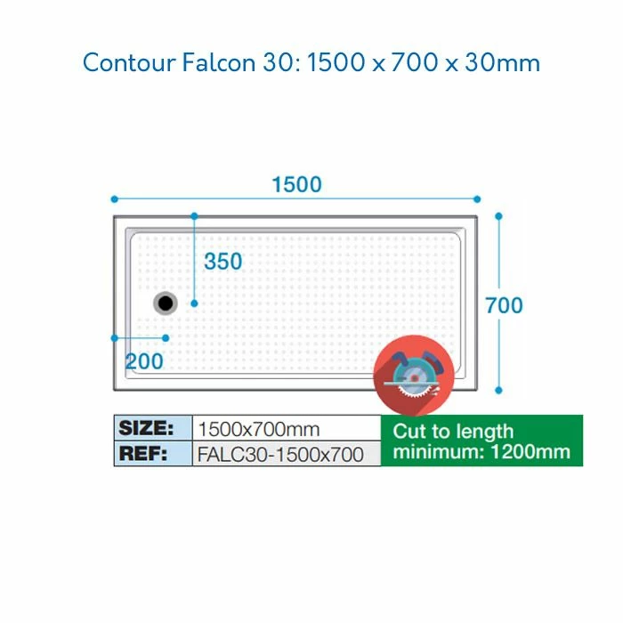 The table below indicates how a standard size tray can be cut to length to make other common size shower trays. Contour offer a FREE ‘Cut to Length’ service available on request. Longer lead-time applies. Please call 0800 280 8008 for further details.