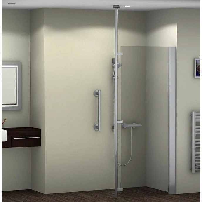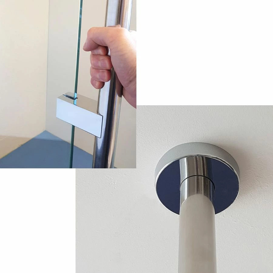 Connects to the glass screen to act as a grabrail & provide additional stability for a user when entering or exiting the shower area.