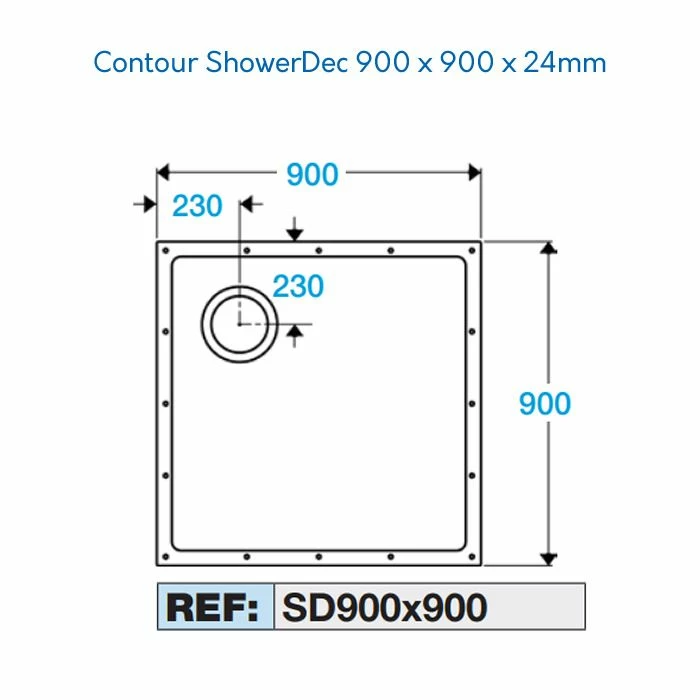 ShowerDec floor formers are available in 12 size options and can be further cut to size using a circular saw or jigsaw. The ShowerDec features offset drain positions designed to avoid joists, trays are not handed. A standard vinyl waste and stainless steel tile and vinyl waste options are available, in addition to a pumped outlet (pump available separately