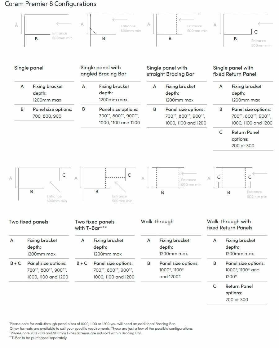 For walk-through panel sizes of 1000, 1100 or 1200 you will need an additional Bracing Bar.