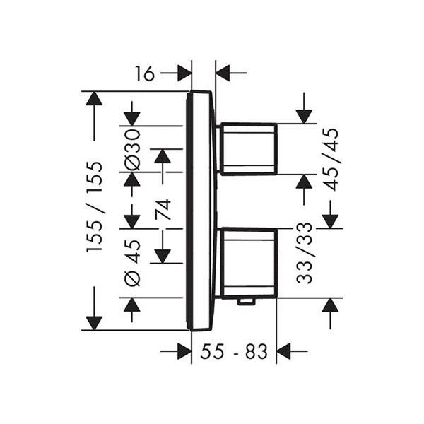 – Hansgrohe Ecostat E thermostatic valve with shut off and diverter, 2 way, chrome (code 15708000)
