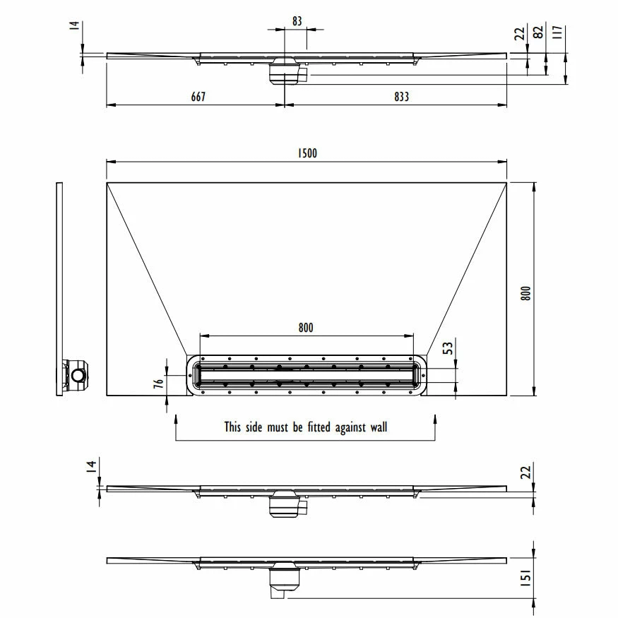 Unlike the linear 2 and 4, the Linear 3 can be can be cut to length within 75mm each side of the drain edge to assist with alcove spaces(Except 1200 x 900 size).