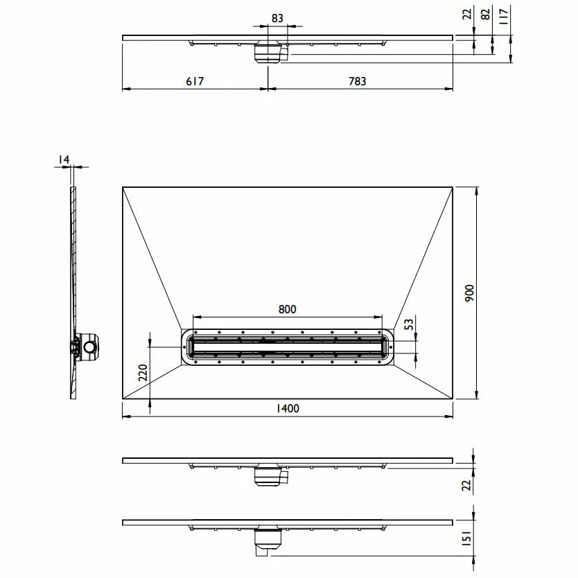 The Aqua-Dec Linear 4 Wetroom Floor Former is a strong 22mm thick wet room tray with 4 pre-formed drainage gradients that provide a level access wetroom floor suitable for a tiled covering.