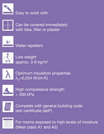 Thanks to their extruded polystyrene foam core and the special coating on both sides, the JACKOBOARD® construction boards are the ideal base for plaster and tile. The surfaces of the JACKOBOARD® system provide a strong primer and can be used on virtually any substrate. At the same time, they are water repellent, thermally insulating, light and sturdy.