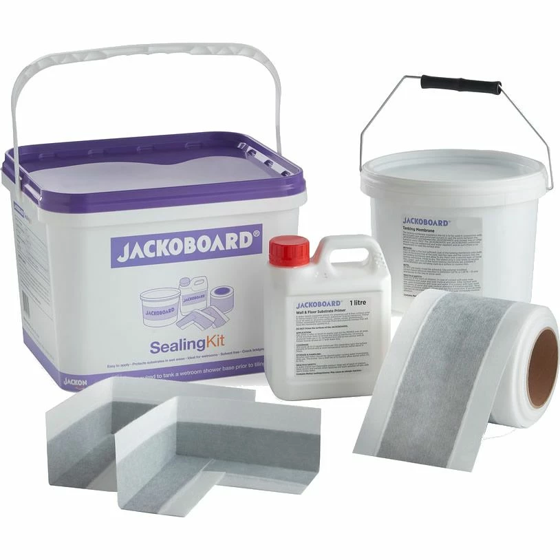 The Jackoboard tanking kit contains a rapid drying, brush/roller applied, single part flexible liquid membrane for use on rigid surfaces in bathrooms, wetrooms and showers. It can also be used to waterproof existing surfaces such as plaster, plasterboard or timber.