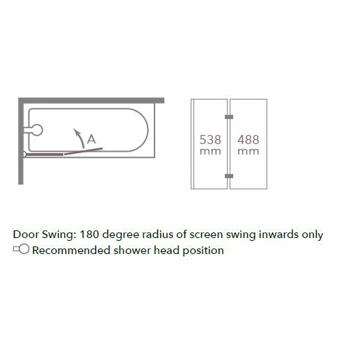 • When choosing an in-swing or folding Bath Screen, please ensure your swing area is not interfering with any brassware or internal shower features. Similarly, when choosing an out–swing, please ensure the out-swing area is free from any obstructions.