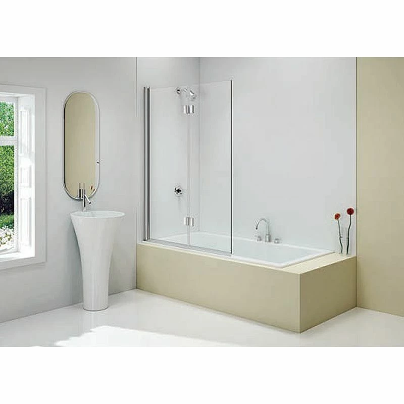 Featuring both design and functionality the MERLYN Frameless 2 Panel folding Bath Shower Screen is the ultimate in space efficiency.