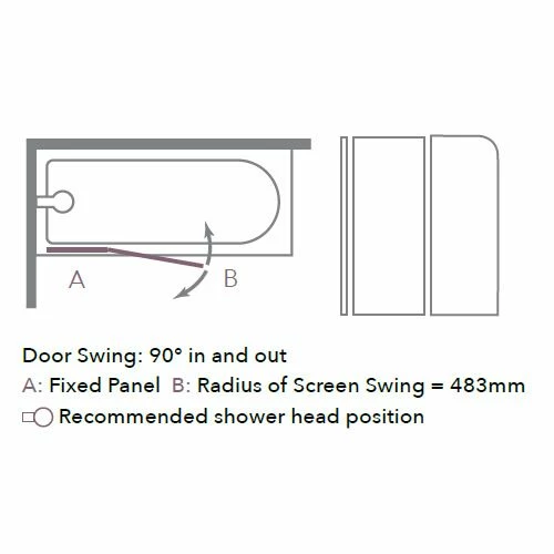 • When choosing an in-swing or folding Bath Screen, please ensure your swing area is not interfering with any brassware or internal shower features. Similarly, when choosing an out–swing, please ensure the out-swing area is free from any obstructions.