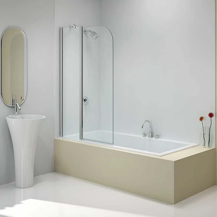 Featuring both design and functionality the MERLYN Frameless 2 Panel Folding Curved Bath Screen is the ultimate in space efficiency. By means of a smooth pivot action, this Bath Screen allows easy access to a relaxing in-bath showering experience.