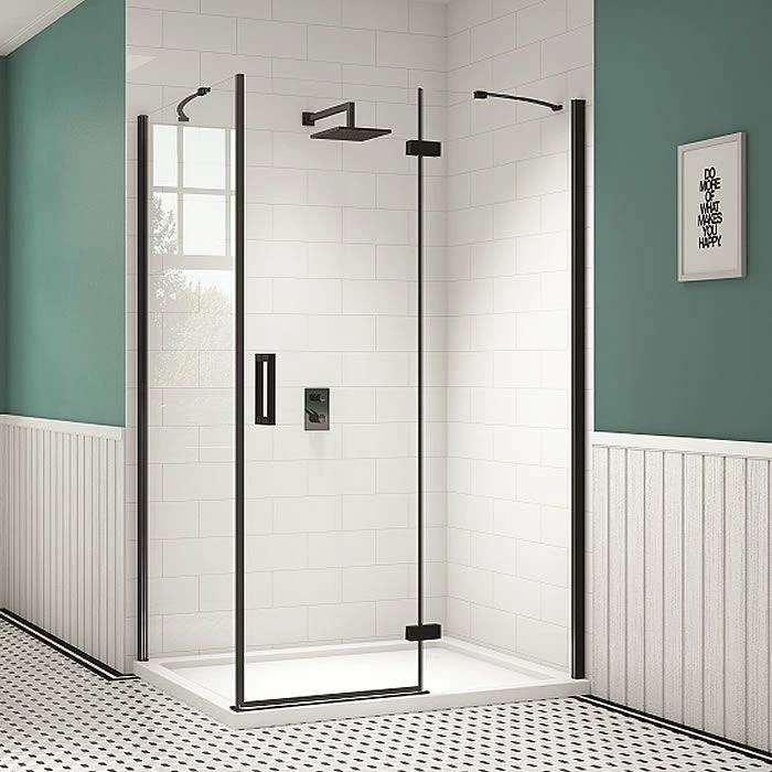 The new frameless Black Hinged Door and Inline panel from Merlyn fuses style and elegance with practical functionality. The hinged door and inline panel creates a fabulous contrast feature within your bathroom or wet room that will be the envy of all who visit.
