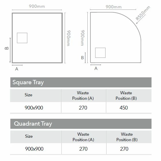 Shower Tray Size: 900 x 900 x 30mm – SQUARE