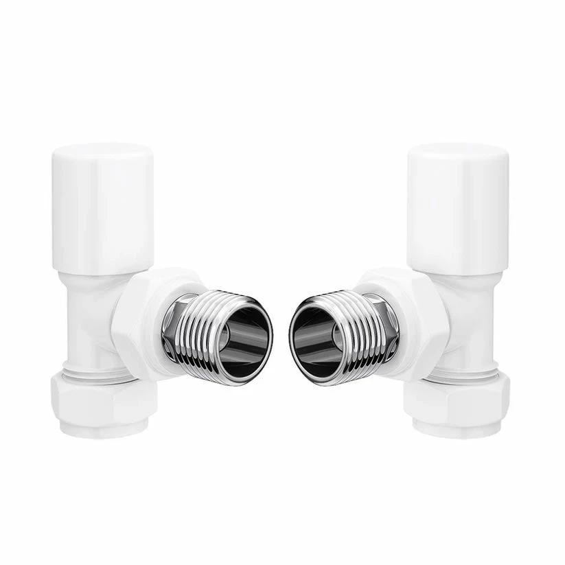 This pack of Redroom angled radiator valves in White have manual rather than thermostatic controls, meaning you can turn them on and off as needed. Angled valves like these are necessary when your central heating pipework has to come out of the wall. The perfect match for our chrome Redroom radiators available now.