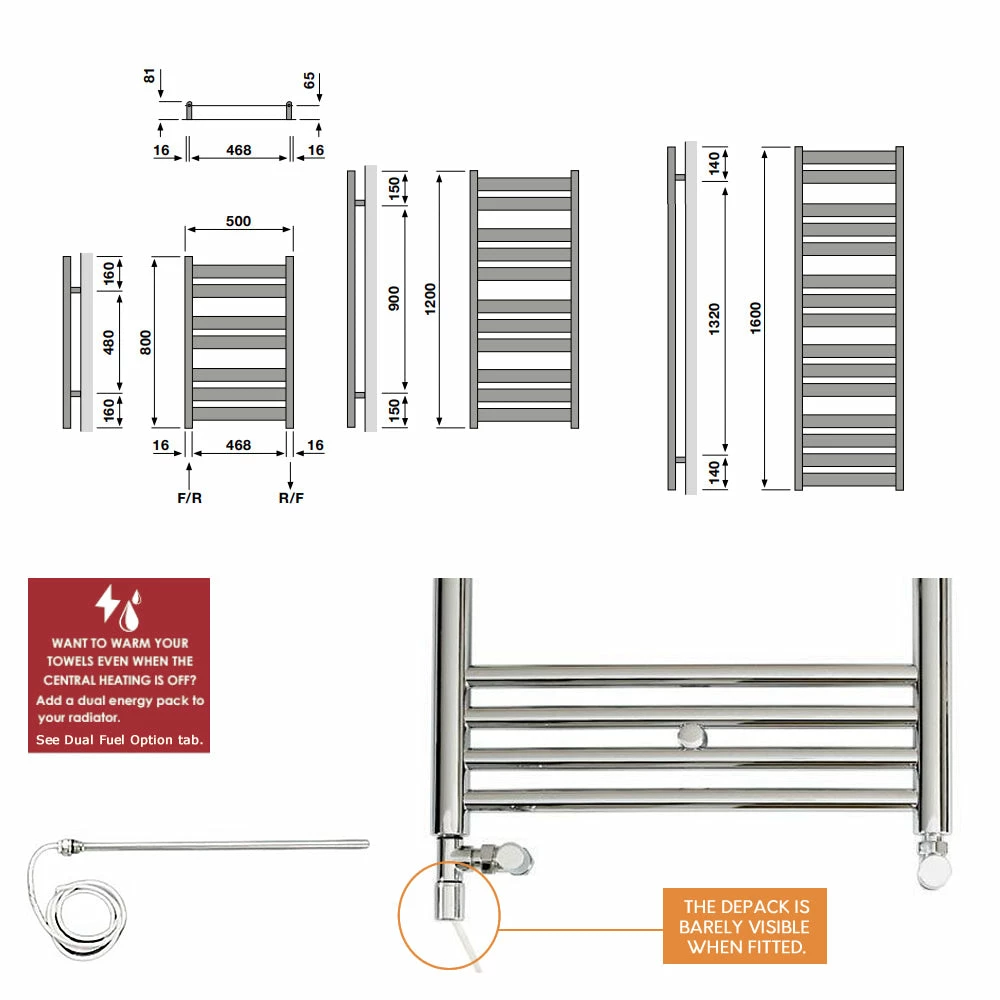 Height: 1600mm Width: 500mm Watts ΔT50: 647
