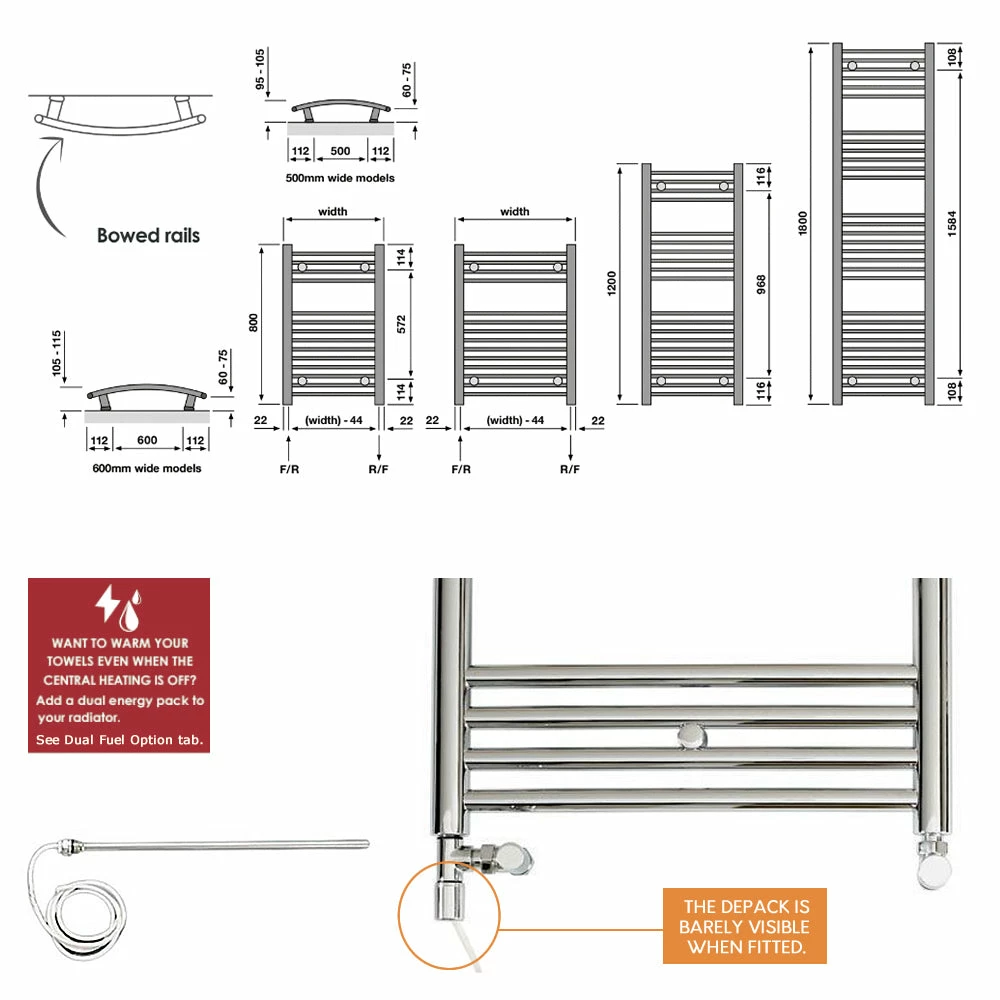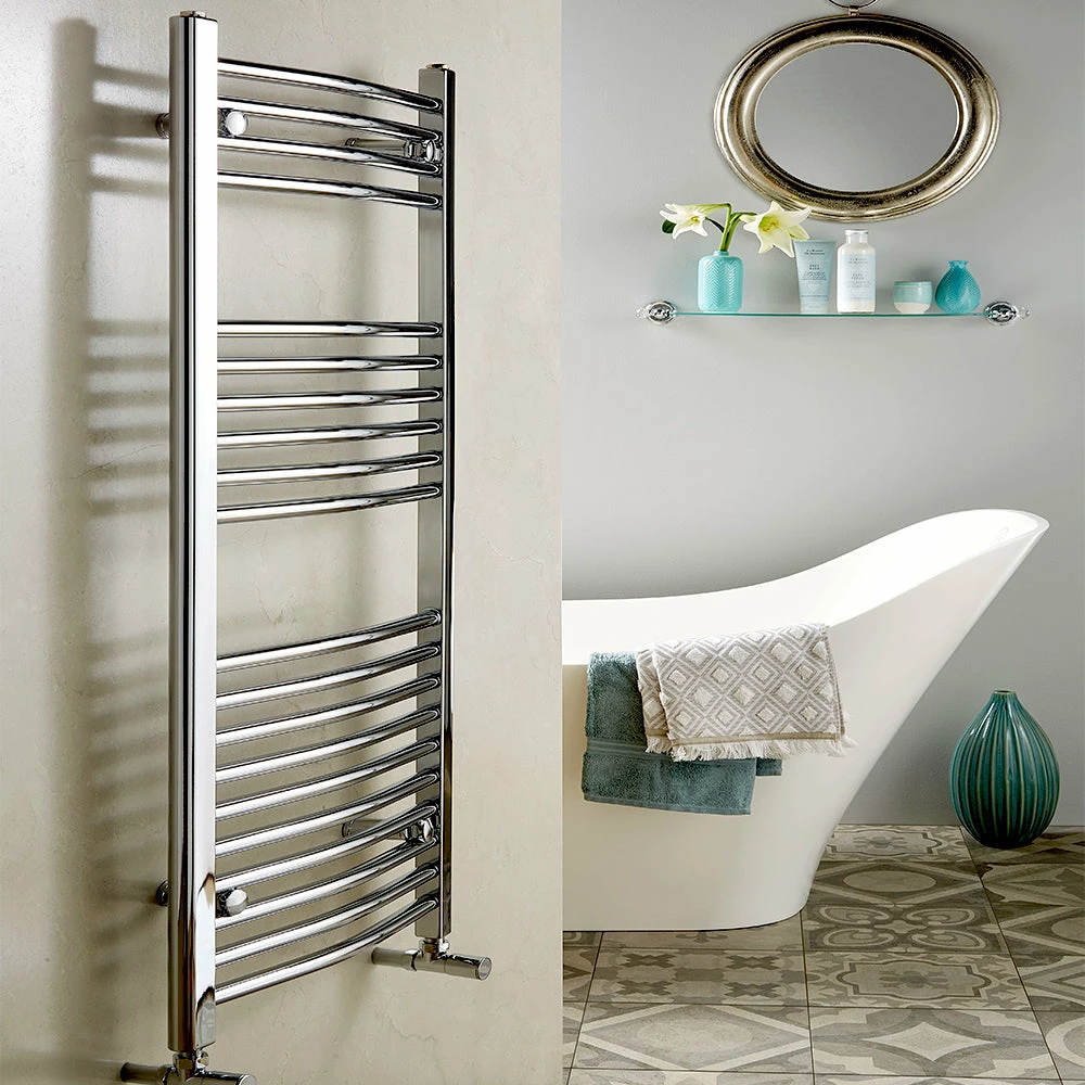 The Elan Curved (chrome) heated towel rail is designed with both style and functionality in mind, from the trusted brand Redroom that will make a striking focal point in your modern bathroom. Featuring slightly bowed rails, offering extra space to hang your towels. The rail’s impressive heat output means it can even help to keep your bathroom at a steady, cosy temperature. This radiator offers a 5-year guarantee, made from high-quality material and engineering.