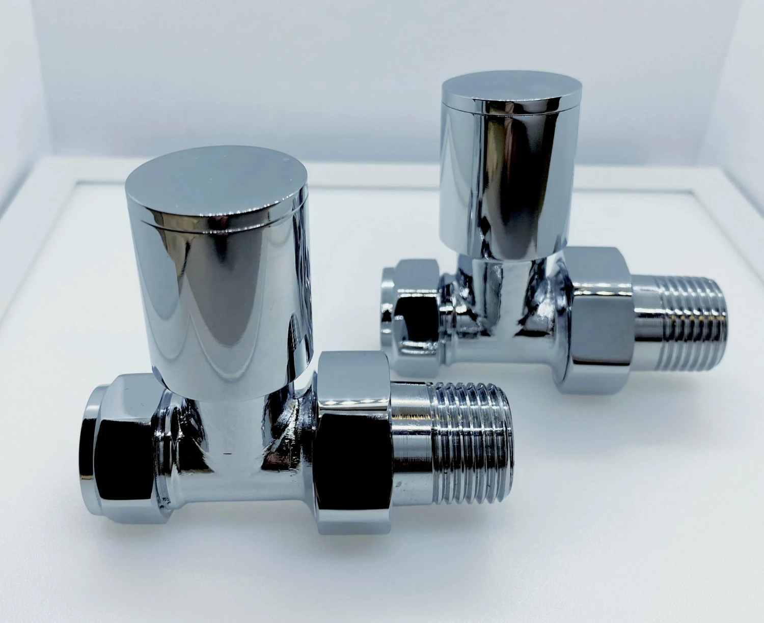 This pack of Redroom Straight Round radiator valves in chrome have manual rather than thermostatic controls, meaning you can turn them on and off as needed. Their straight shape means they’re designed for pipework that sits in the floor rather than the wall – for wall pipes you’ll need angled valves. The perfect match for our anthracite Redroom radiators available.