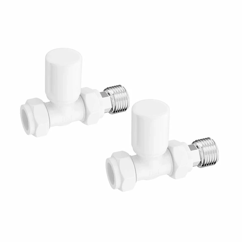This pack of Redroom Straight Round radiator valves in white have manual rather than thermostatic controls, meaning you can turn them on and off as needed. Their straight shape means they’re designed for pipework that sits in the floor rather than the wall – for wall pipes you’ll need angled valves. The perfect match for our anthracite Redroom radiators available.