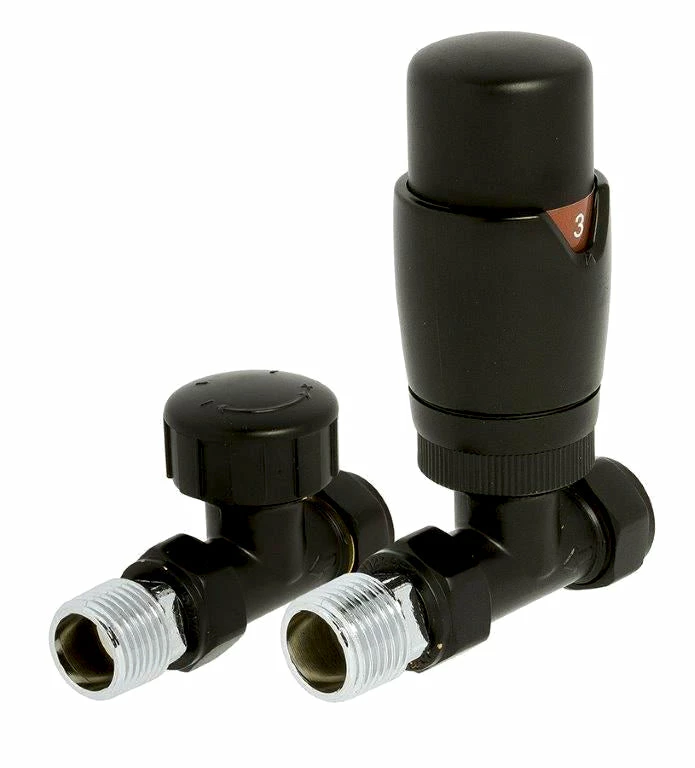 Redroom Straight Thermostatic Radiator Valve Pack – Black
