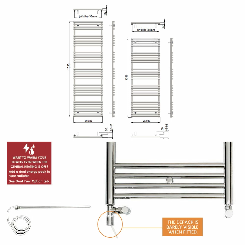 Height: 1635mm Width: 496mm Watts ΔT50: 795