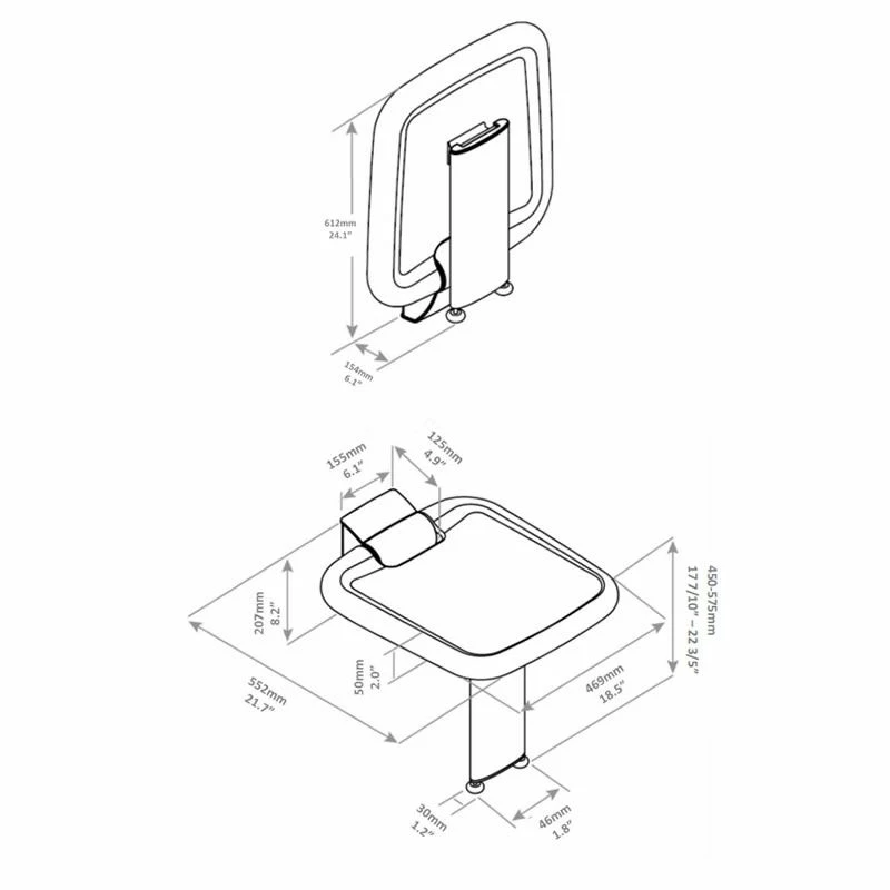 The shower seat can be folded into a vertical position when it is not in use. That way it only takes up very little space, and you can use the room in the bathroom efficiently.