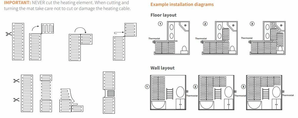 The pressure sensitive adhesive on the mesh securely binds the mats to the substrate, keeping them flat and ensuring the application of tile adhesive is snag free whilst allowing the mats to be easily repositioned as needed. The ultra-thin, 1.8 mm multistrand, dual core heating cable, is double insulated with an advanced fluoropolymer making it exceptionally tough and easy to tile over.