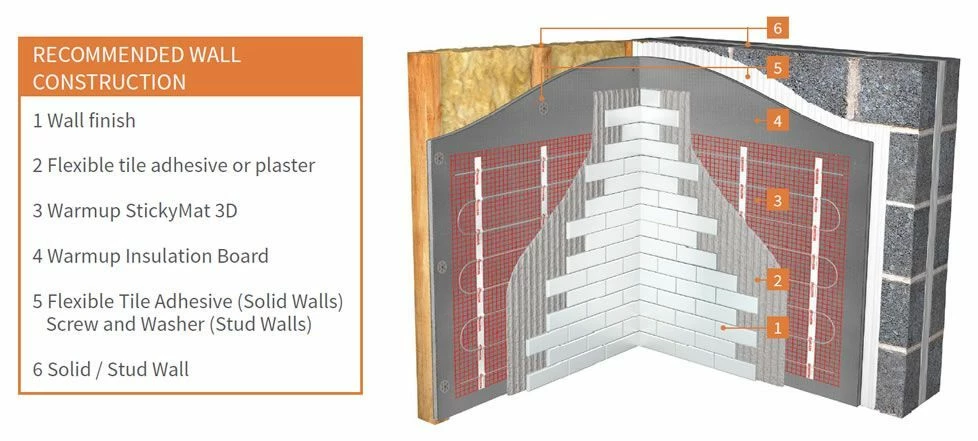 Used in conjunction with a Warmup Underfloor Heating solution, the StickyMat 3D System is ideal for creating a 360 ? sense of warmth in your home. It has been developed by our in-house team of engineers and is recommended for installation with ceramic, stone or porcelain wall tiles. Its heating wires are ready attached to a self-adhesive backed mesh mat for a hassle-free installation.
