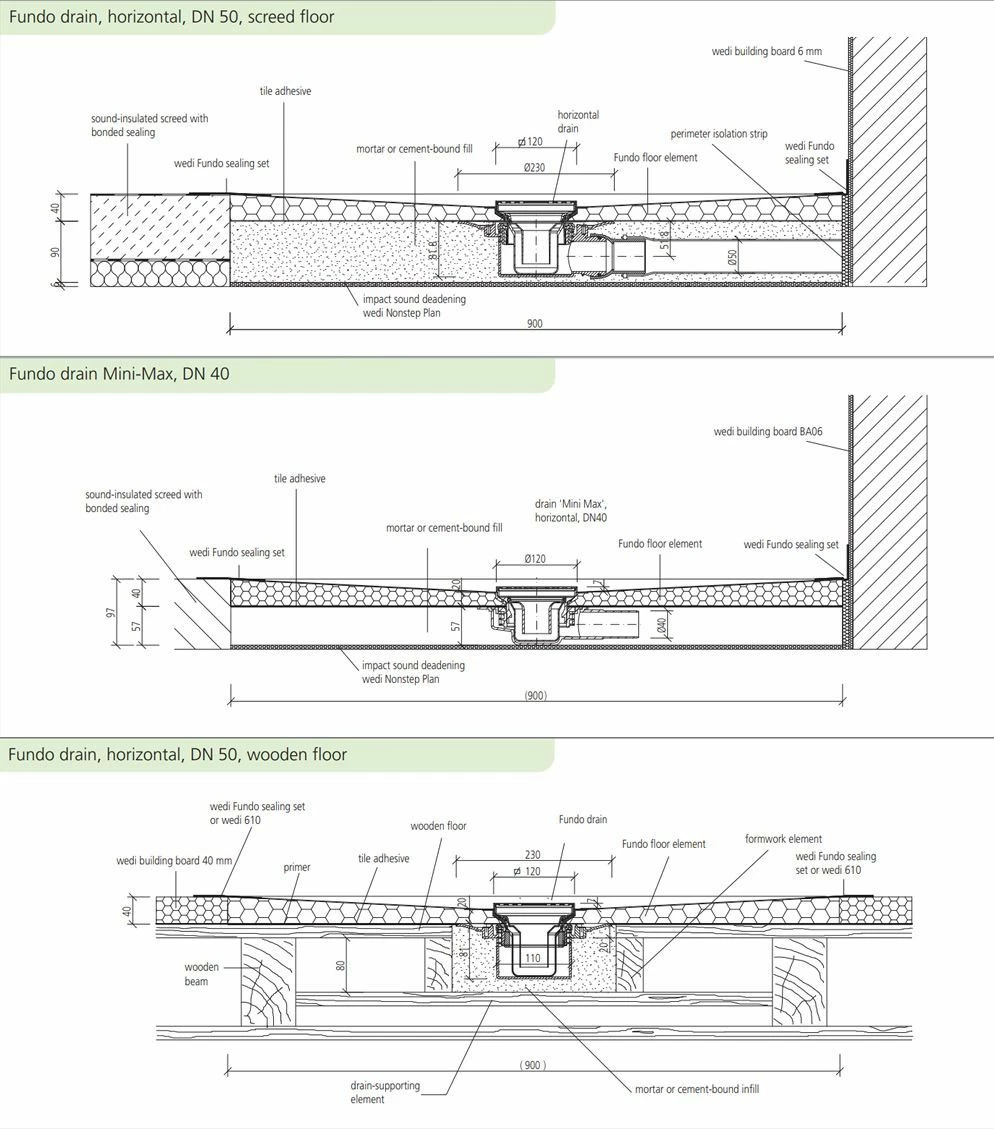 Whilst the Wedi Fundo Borgo is primarily designed for use in a concrete screed floor it can be laid on top of a wooden floor (excluding traditional floor boards). The drain is laid inside the floor structure and will need supporting with a concrete screed infill or the Wedi Fundo drain substrate. Please see below instructions. Alternatively for suspended wooden floors (traditional floorboards) please see the Wedi Fundo Ligno wet room former.