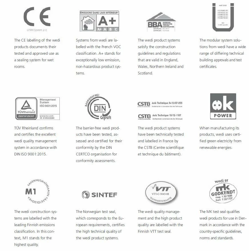 Wedi Shower Elements BBA Certificate No:14/5126