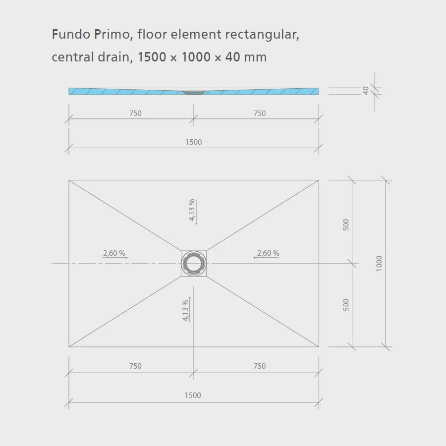 Fundo floor elements from wedi offer a reliable and efficient solution for the construction of waterproof, floor level showers. Featuring a fitted and sealed floor drain (available separately), a supplementary factory applied waterproof coating and a predefined slope, they require far less work on any project and therefore save the installer a lot of time.