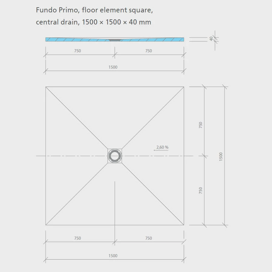 Fundo floor elements from wedi offer a reliable and efficient solution for the construction of waterproof, floor level showers. Featuring a fitted and sealed floor drain (available separately), a supplementary factory applied waterproof coating and a predefined slope, they require far less work on any project and therefore save the installer a lot of time.
