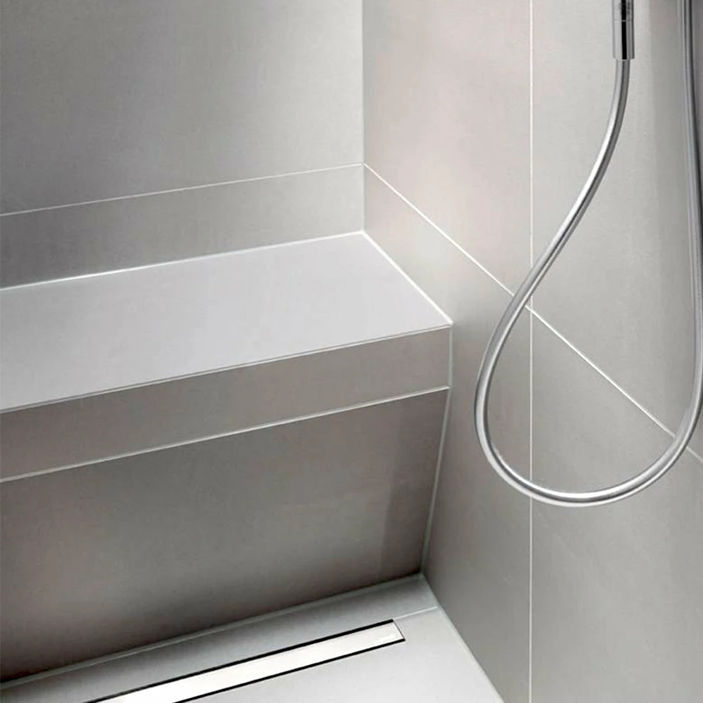 Comfort means something different to each person. The feeling of quiet and relaxation when sitting in the shower, though, is a very pleasant experience for everyone. The wedi Sanoasa benches provide plenty of space to relax and pamper your body in comfort. The clever construction of the wedi Sanoasa bench enables unequalled freedom of visual design; both the seating areas and the carrier elements can not only be positioned the way you like but also their shapes and sizes can be modified to suit.