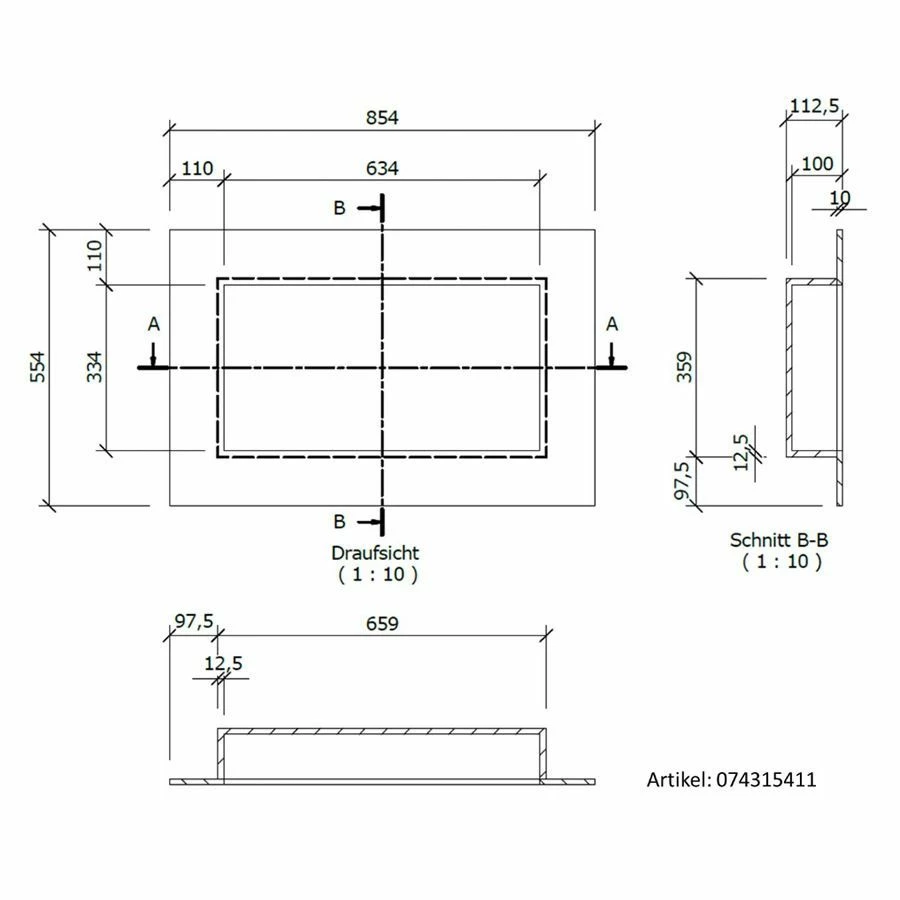Width (Interior dimensions / Exterior dimensions) 634 / 854mm